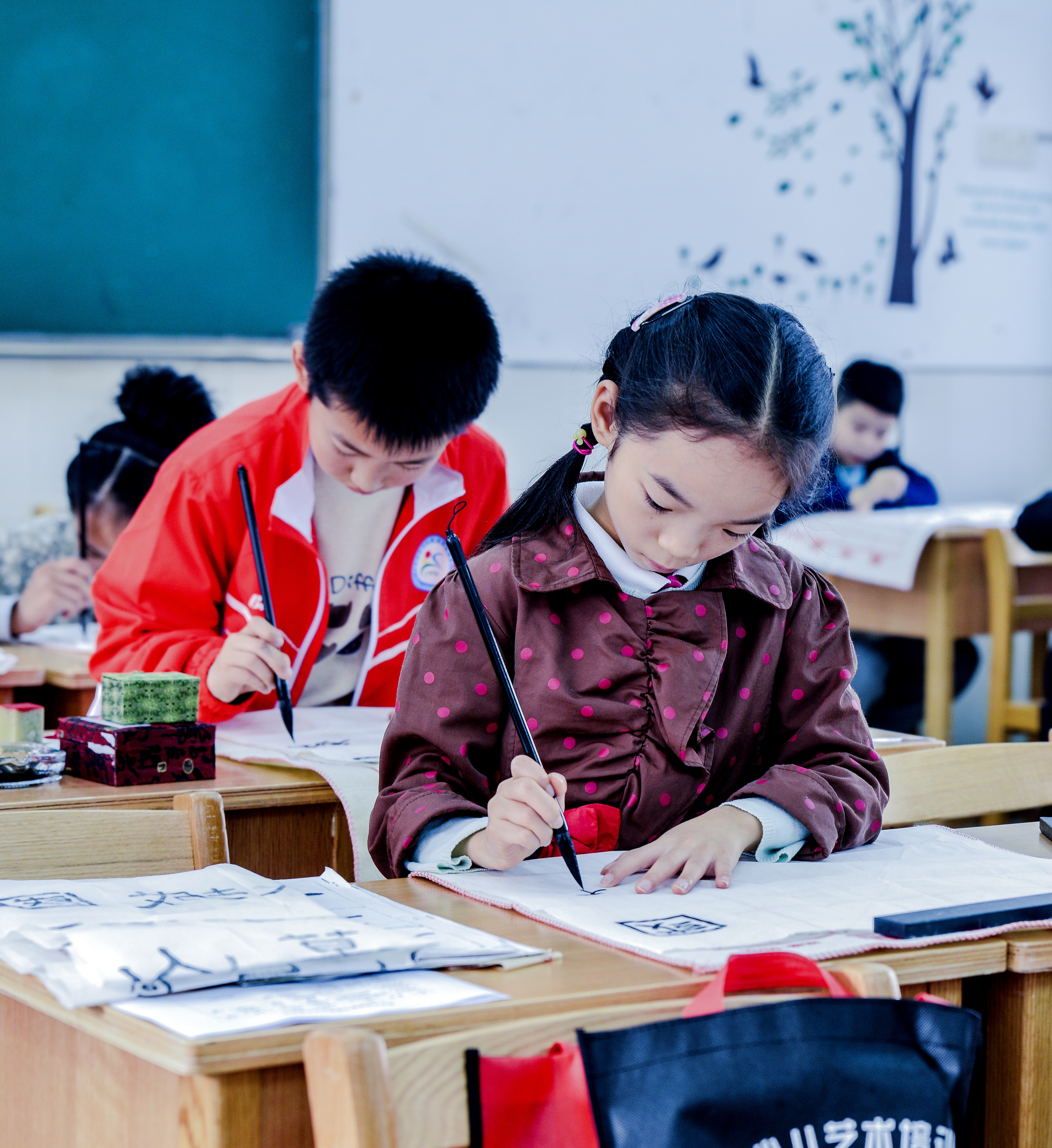 考级现场,考生个个精神饱满,充满自信,全神贯注。他们现场创作的书画作品线条流畅,疏密有度,挥毫泼墨,刚柔并济,充分展示了考生的艺术水平。“参加考级,既可以检测我绘画的水平,也能激励我向下一个目标努力”“在一次次考级中,我的字越写越漂亮,我对自己要求也越来越高,考完十级,我还会继续努力”。考级结束后,考生们这样谈起自己的感受。