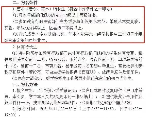 ②特长生加分政策具体内容