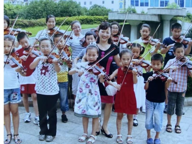 2021年10月,在北京“央视桃李杯”青少年艺术盛典现场,我第一次看到他们令人惊艳的小提琴齐奏《我和我的祖国》,2022年春节,中国教育电视台“筑梦的摇篮”少儿春晚节目,播出了由他们十九个学员联合表演的二胡与小提琴合奏《喜洋洋》,在震撼之余,我注意到指导老师的名字:杨翠芳、唐三祥。