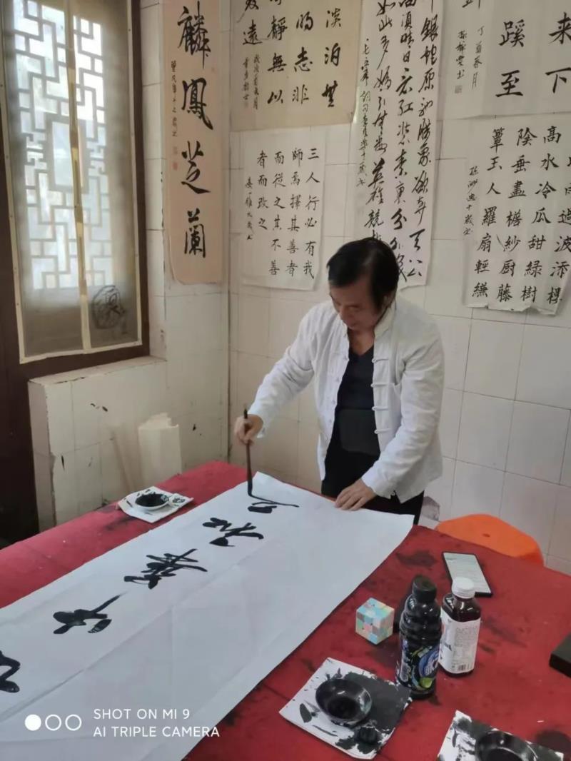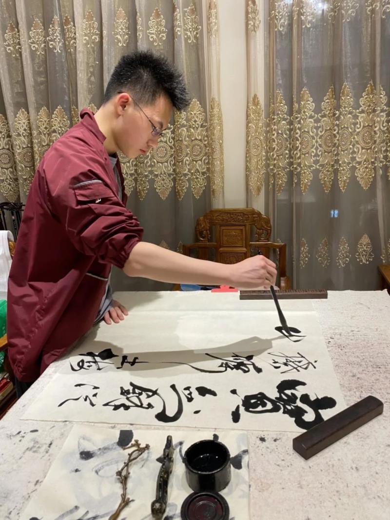 他一会儿教大字,一会教小字,一会带你写“福”字,一会儿教你写“春联”,他写的字上有时还隐藏着一个小动物,象变戏法似地,哎,挺好玩,可他在书写时,却容不得你顽皮,他会认真地帮你分析字体结构,讲解这字临了古代什么碑帖,怎样把这个字写得有劲有味,怎样让墨有五色,又如何让你的字“宽可跑马,密不透风”,又如何才能让书法有“筋、骨、血、肉、气”,在他的娓娓道来中,我对书法真谛的领悟,也在他那里慢慢开启,当我进初中时,同学们互相介绍自己,展示特长时,我的书法作品惊艳了全班,那一瞬间,我真的很自豪。