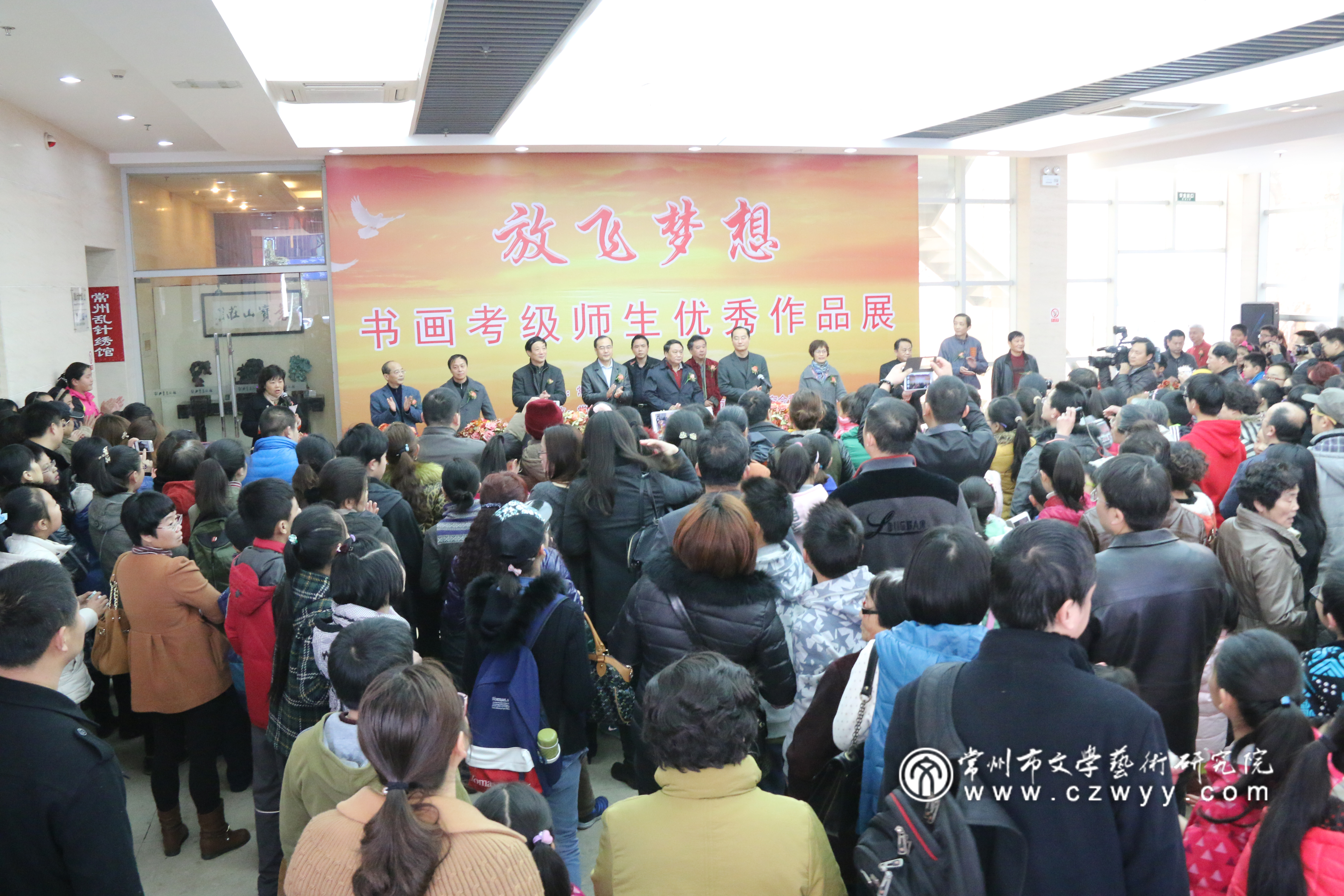 3月15日,由常州市文联主办,常州市文学艺术研究院、常州市花鸟画研究会青少年分会承办的“放飞梦想”书画考级师生优秀作品展在刘海粟美术馆开幕,展览持续三天,近2000多名学生和家长参观了展览。