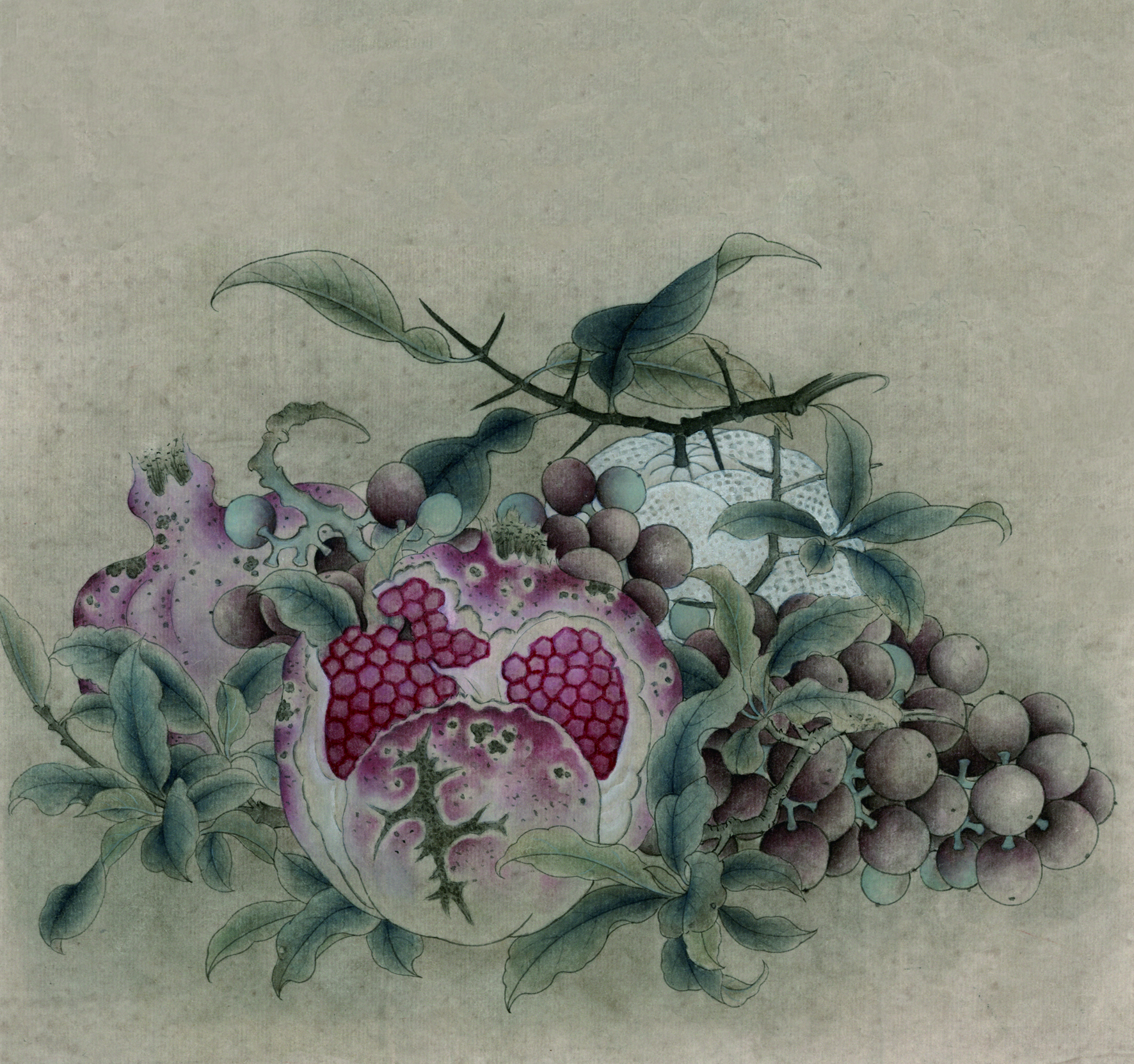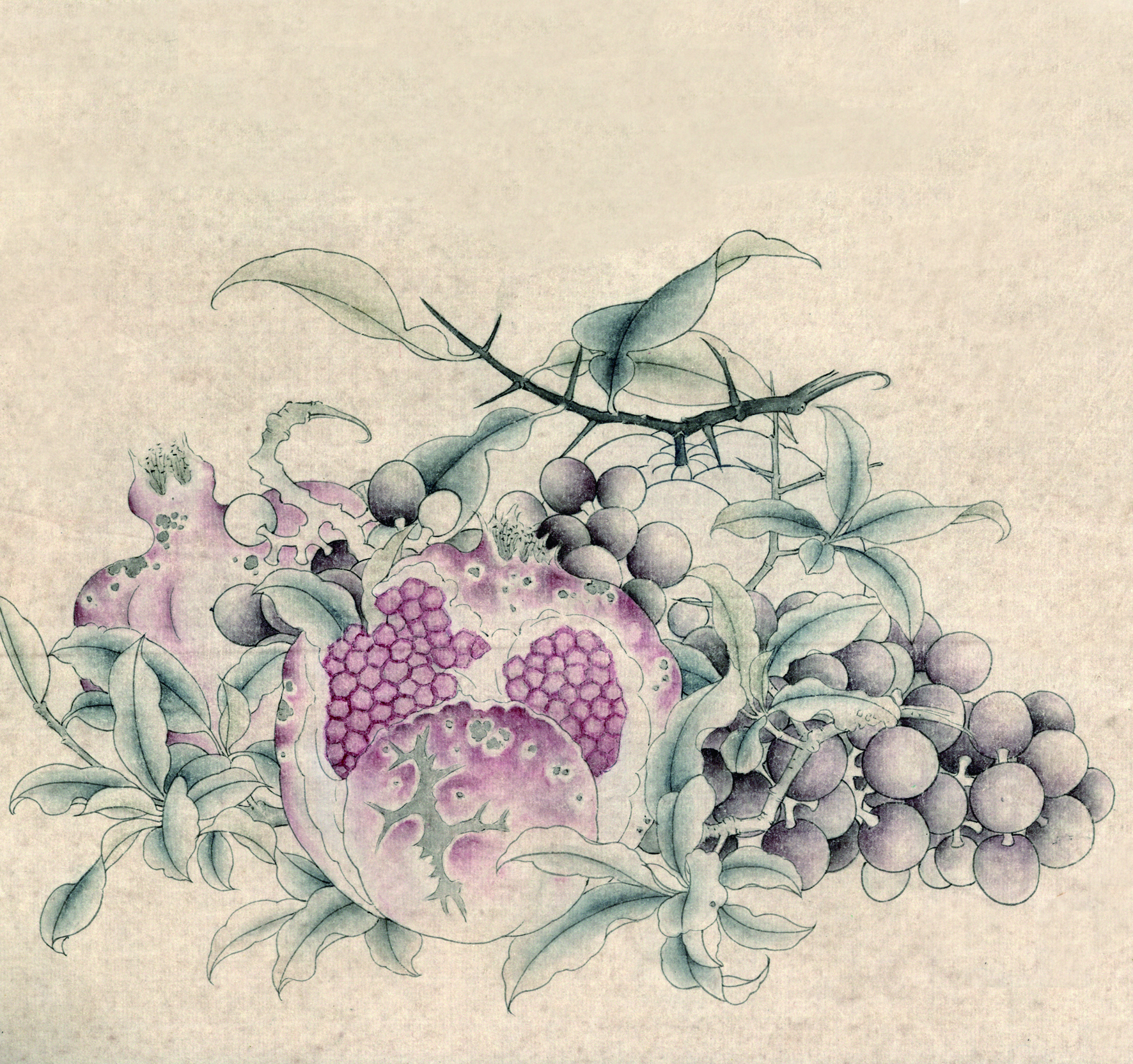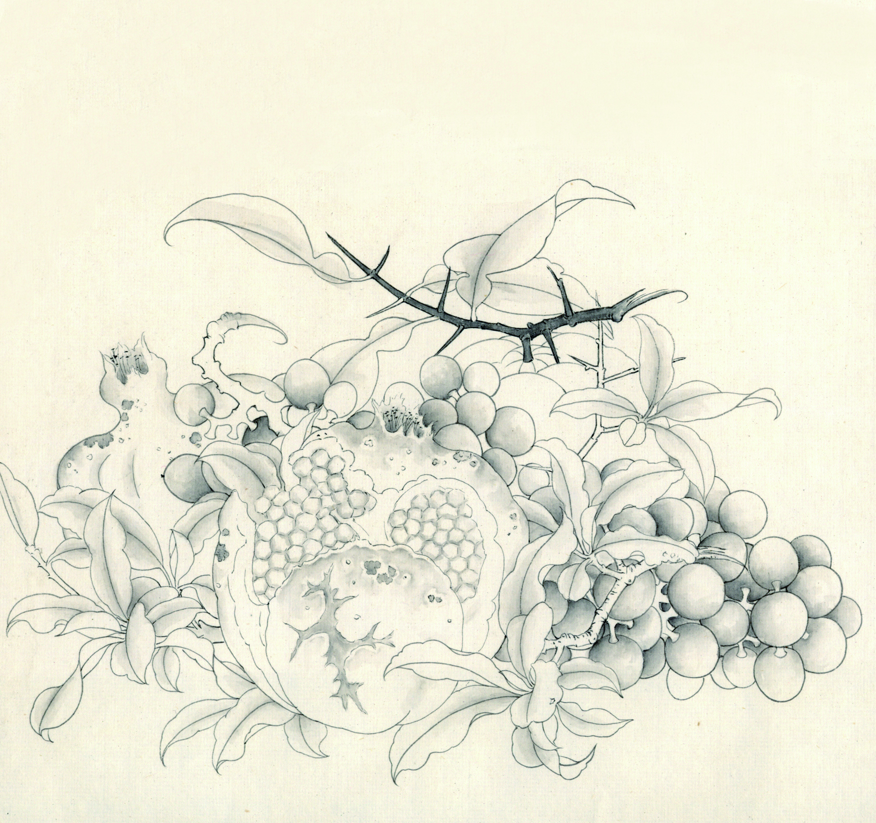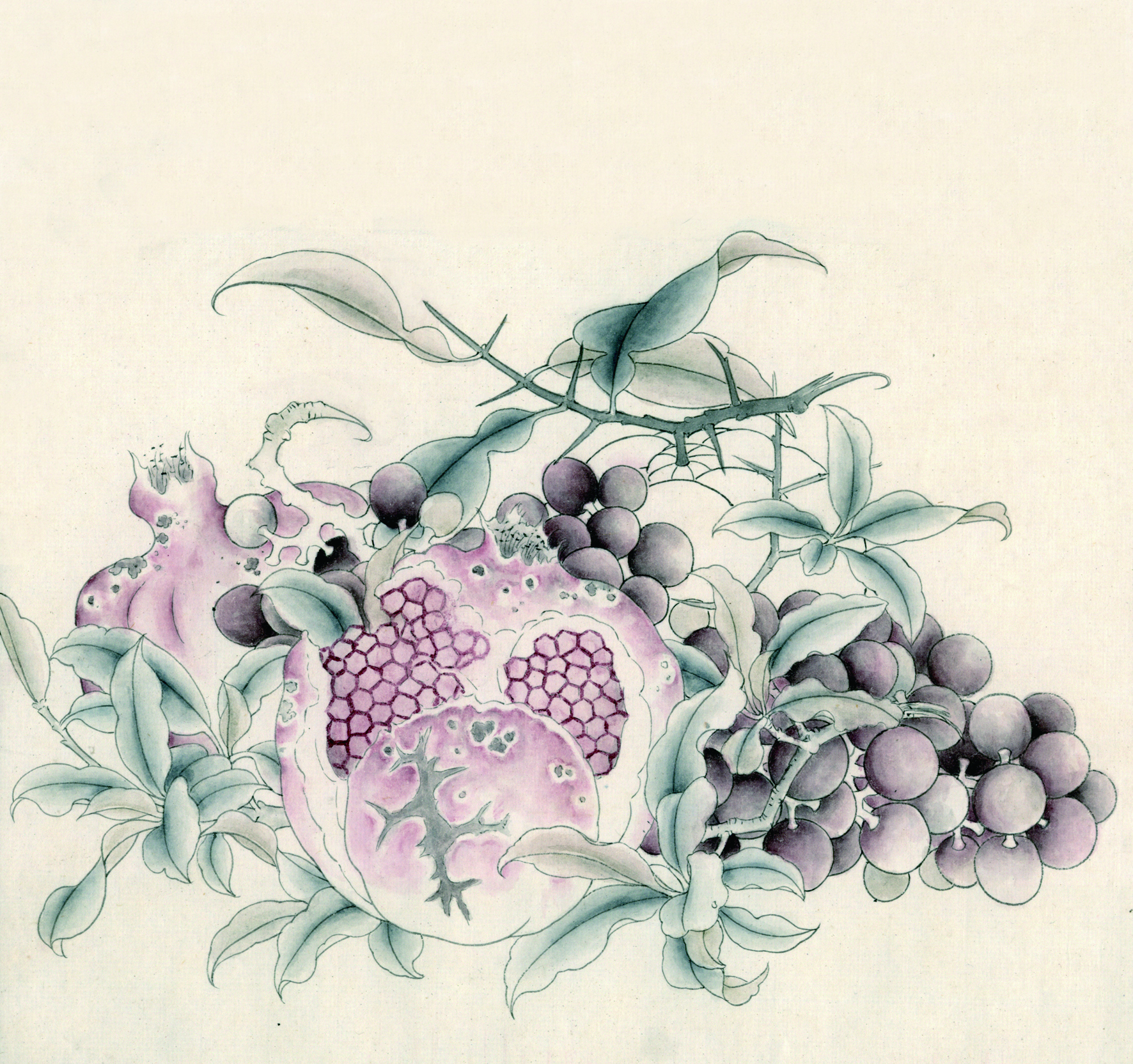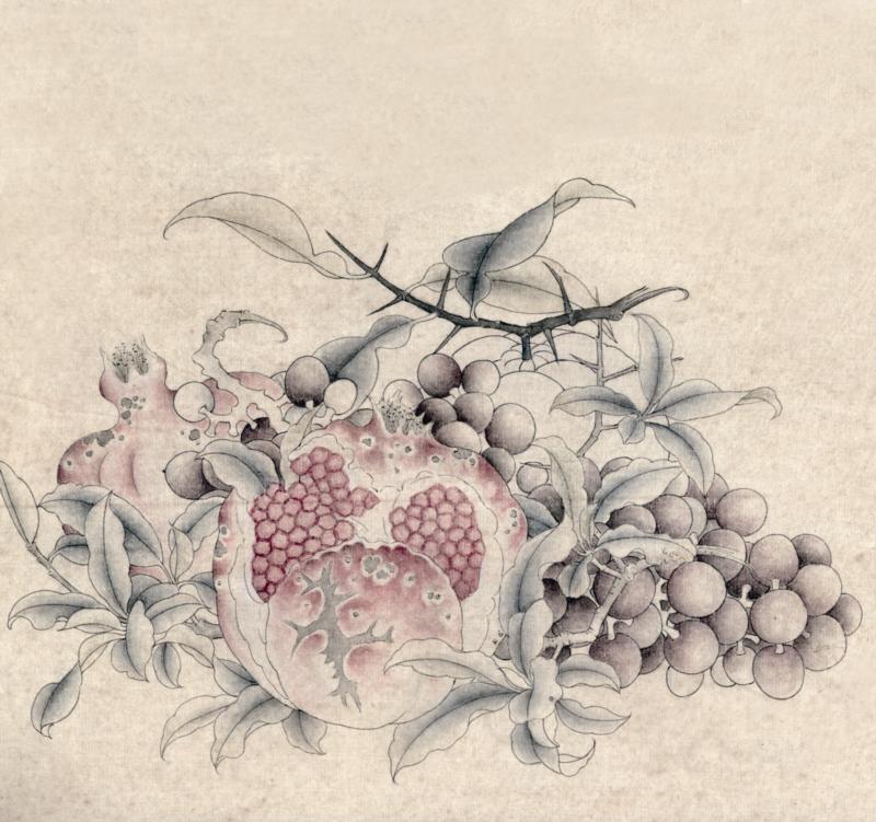 就拿工笔画中的步骤技法来说,倘若抛开物象分解成单一技法来学习,则枯燥无味,学生也难有耐心,临摹时就具体的形象依托,笔墨技法的学习就变得全面和易懂。例如图中所示临摹宋人鲁宗贵《吉祥多子图》的步骤中,首先勾勒外形学习了勾线,其次结构分染学习了分染方法,再然后学习了打底、罩染等设色技巧,最后整体调整画面,从而完成一幅完整的临摹作品。在这个过程中,既学习了勾线技法,又学习了分染、罩染和整体协调画面的各个环节,相比较单一的技法学习来看,这种临摹将技法变得更易理解,且作品完成能给予其成就感,也能够增加青少年学习国画的兴趣和自信心。